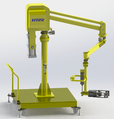 地面移動(dòng)式:底座固裝于可移動(dòng)的小車或者固裝在可被叉車等移動(dòng)設(shè)備上,以便于轉(zhuǎn)移到不同的工作場所進(jìn)行作業(yè),節(jié)省了客戶采購設(shè)備的成本。由于其可移動(dòng),也使得對(duì)于客戶現(xiàn)場的要求降低, 可根據(jù)實(shí)際需要移動(dòng)設(shè)備。小車底部配有配重塊以及可擺動(dòng)的四腳支撐,對(duì)于設(shè)備的安全性起到不 可或缺的作用。