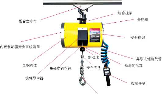 ?節能一極低的耗氣量,平均每個工作循環耗氣量約為0.21m/h,是氣動葫蘆氣量的1/50。